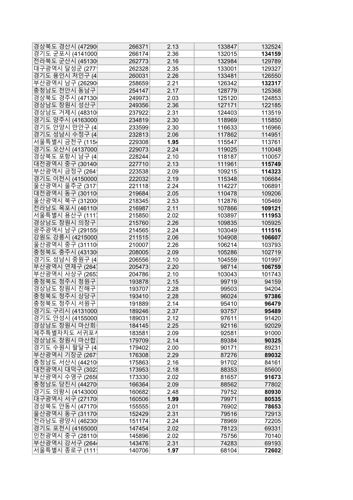 2022년 5월 지역별 인구수 자치구 시도별자료 2022. 6. 5. 23:42